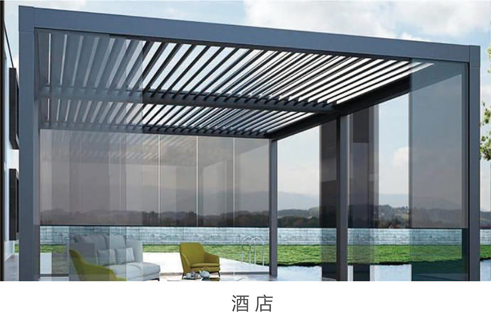 3.頂面采用中空鋁合金葉片,隔熱散熱,精準調光,搭配LED燈光系統,即使夜晚也是風景優美。