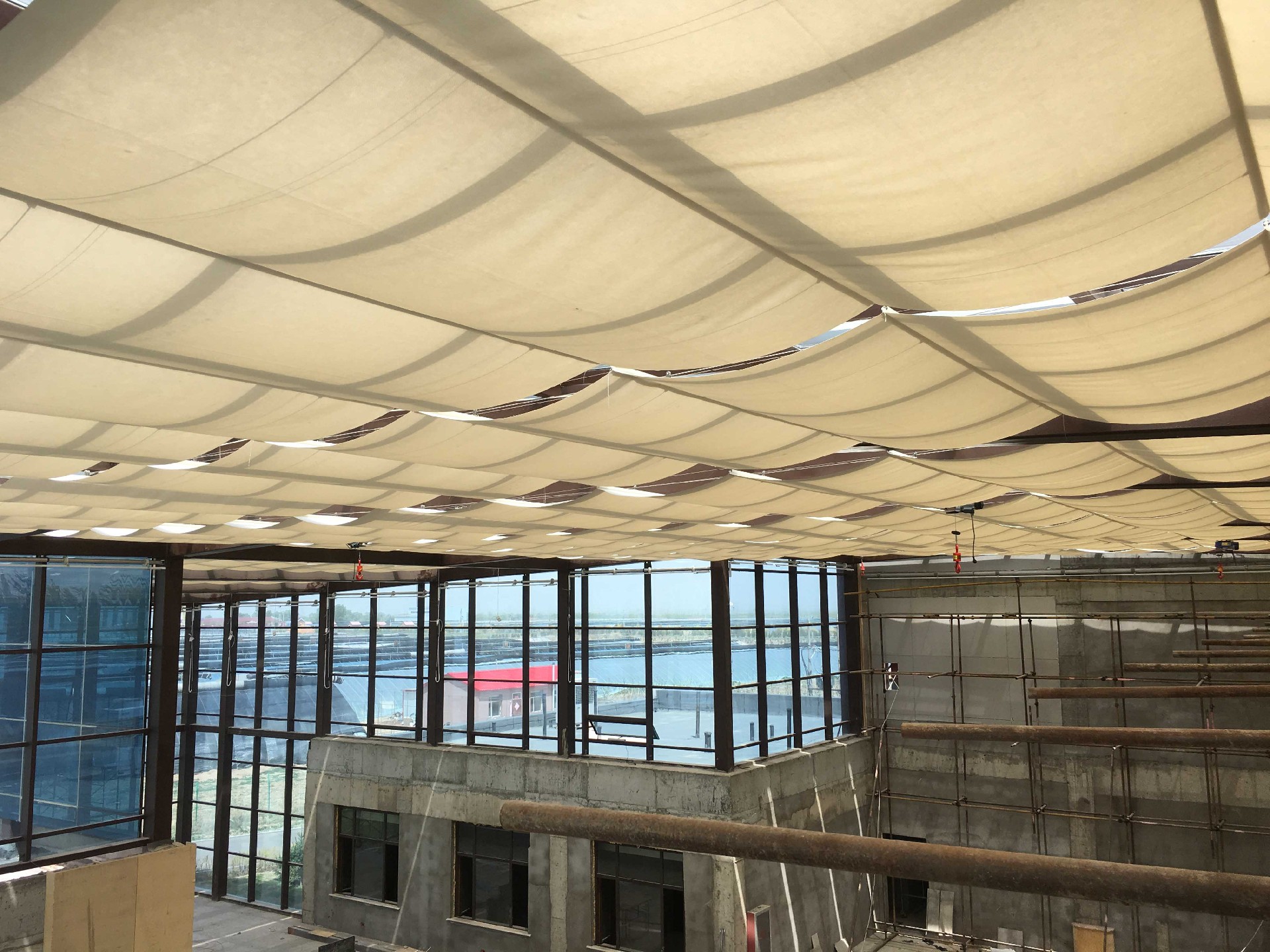 可以是直線,也可以是弧形,運用得當可以基本和建筑曲線相吻合,既遮陽又保持建筑設計的風格。該機構選用系列同步電機,面料中有支撐桿,收攏時呈折疊狀,故面料無須承受很大的抗拉強度,對面料的張力要求不高,而且便于安裝。特點是結構簡單,運行平穩,成本低,特別選用于平面,斜面和弧形的框式玻璃結構頂。適用于工程和民用,現已廣泛運用于別墅玻璃頂和陽光房的遮陽。
